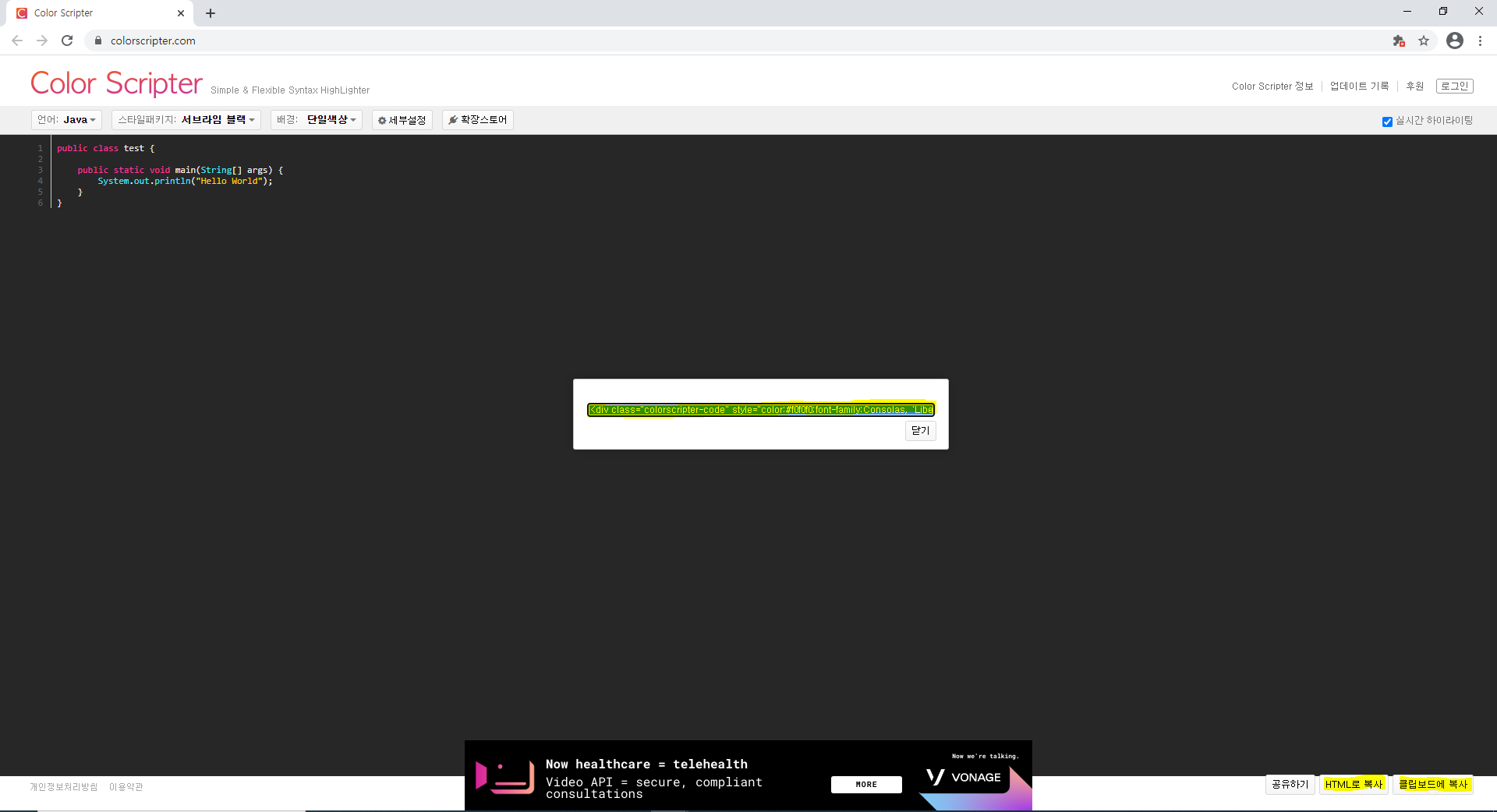 3) 아래 그림과 메뉴바에 설정을 하고 코딩(말이 코딩이지 여기선 걍 문서작성) 후 우측 하단에 HTML로 복사 혹은 클립보드에 복사를 클릭하면 중앙에 modal(팝업창)이 활성화되며 안에 내용을 복사한다.