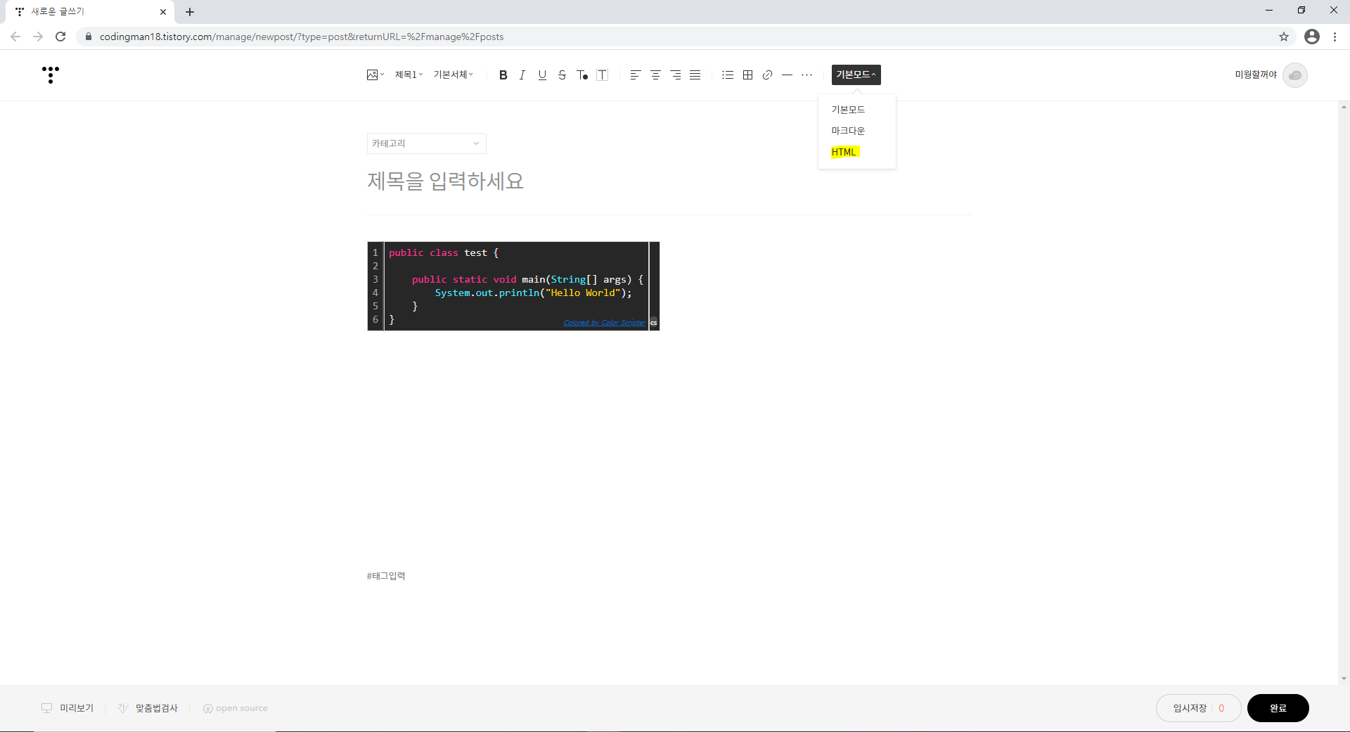 4) HTML로 복사한 내용을 HTML 삽입이 가능한 게시판(ex. 티스토리)에 붙이면 아래 그림과 같이 나타난다.