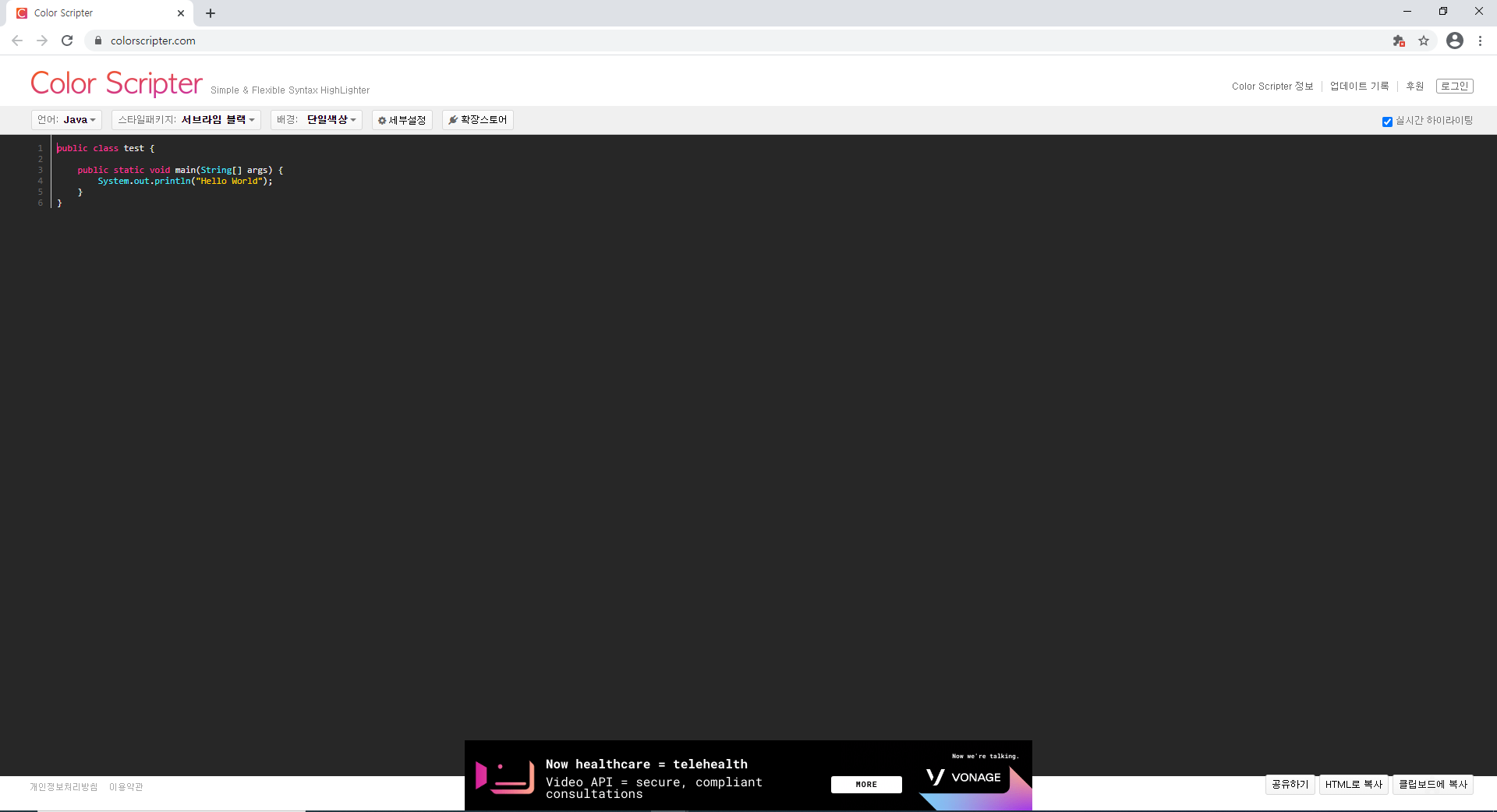 1) 검색 입력란에 color scripter 입력 후 아래 그림과 같이 접속하거나 URL 입력란에 https://colorscripter.com를 입력하여 접속한다.