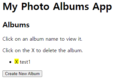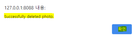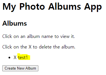 listAlbums 창에서 삭제하고 싶은 앨범의 'X' 클릭 > 알림창 "Successfully deleted album." 확인 클릭 > 앨범 삭제 확인.