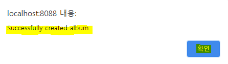 URL=http://[IP]:[Tomcat Server Port]/[Context]/[파일명.파일확장자]로 접속 > Create New Album 클릭 > Enter Album Name 작성 후 확인 클릭 > 알림창 "Successfully created album." 확인 클릭.