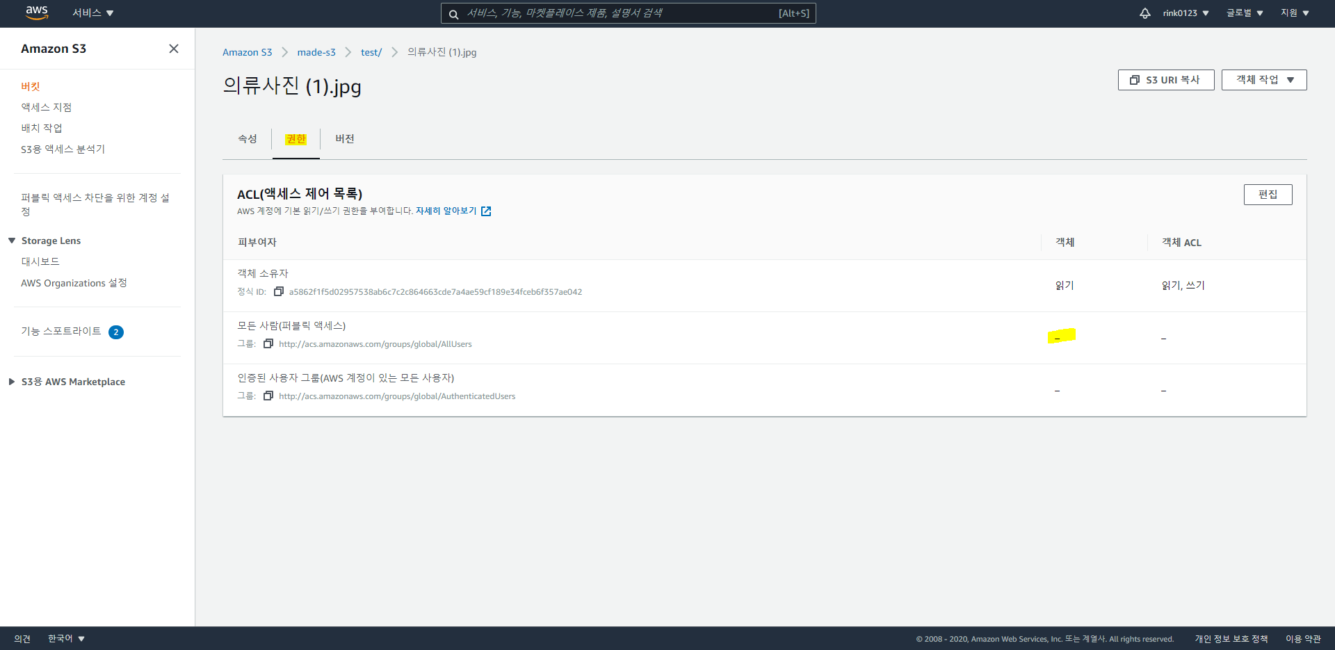 [참고] AWS>설명서>Amazon S3>콘솔 사용 설명서>권한 설정