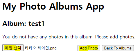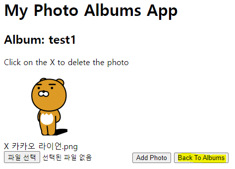 파일 추가 후 Back To Albums 버튼 클릭 시 폴더 유형으로 생성, listAlbums 창에 방금 전 생성한 앨범이 나온다.