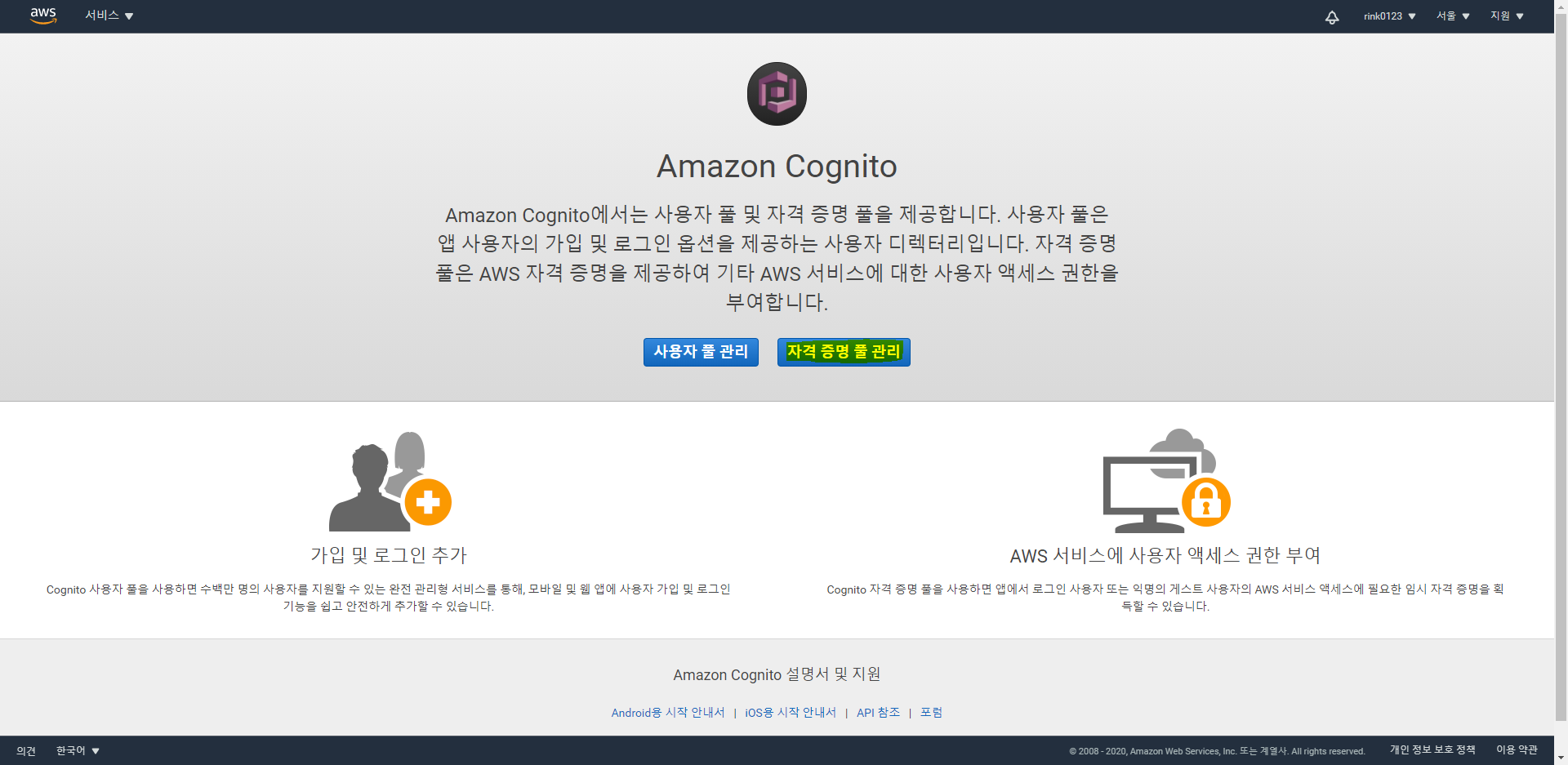 7) AWS Management Console > Cognito 검색 또는 선택.