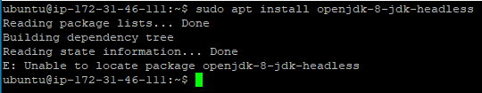 JRE 설치 : sudo apt install openjdk-[버전]-jre-headless 입력.