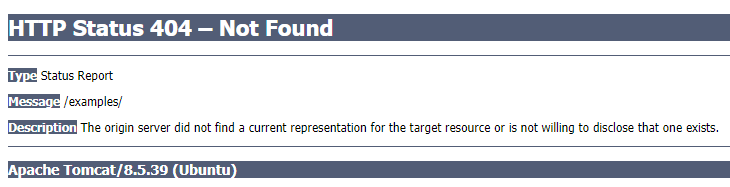 tomcat-docs, examples, admin 미설치 시 tomcat 홈페이지를 통해 접근하면 404 Error가 발생된다.