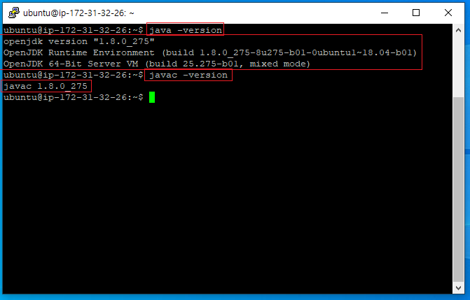 삭제 후 javac 또는 javac -version 입력 시 openjdk 설치 명령어나 나오지 않는다면 ubuntu를 껐다 켜면 된다.